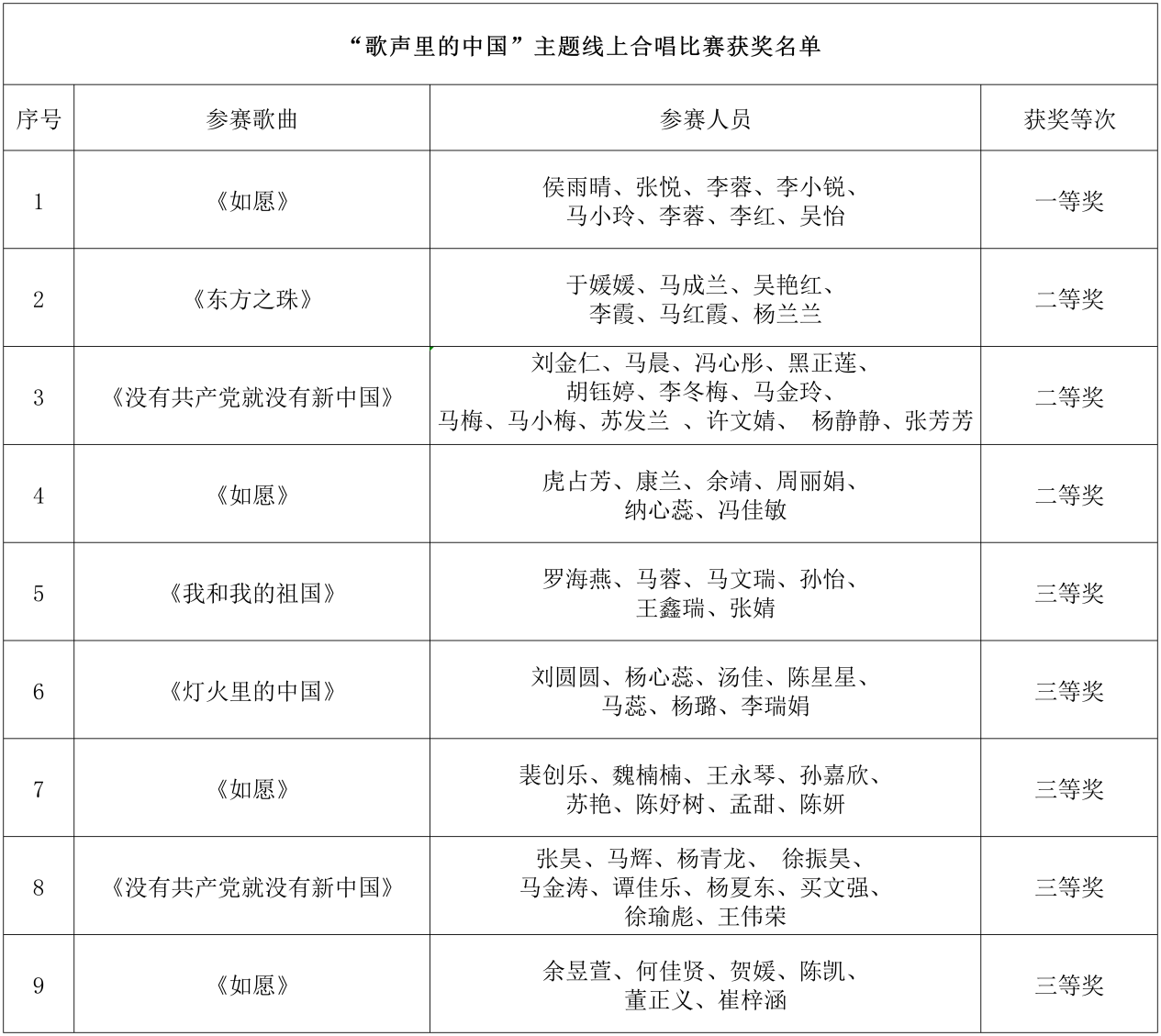 自实践教学活动启动以来,吸引了大二年级及大一年级(3+2)各专业学生踊跃参与。经过集中评审,最终评选出一等奖 1 项、二等奖 3 项、三等奖 5 项。其中,侯雨晴团队报送的《如愿》获一等奖;于媛媛团队的《东方之珠》、刘金仁团队的《没有共产党就没有新中国》等3 个作品荣获二等奖;罗海燕团队的《我和我的祖国》、刘圆圆团队的《灯火里的中国》等 5 个作品获得三等奖。部分优秀参赛作品将在马克思主义学院官方微信公众号进行展播。